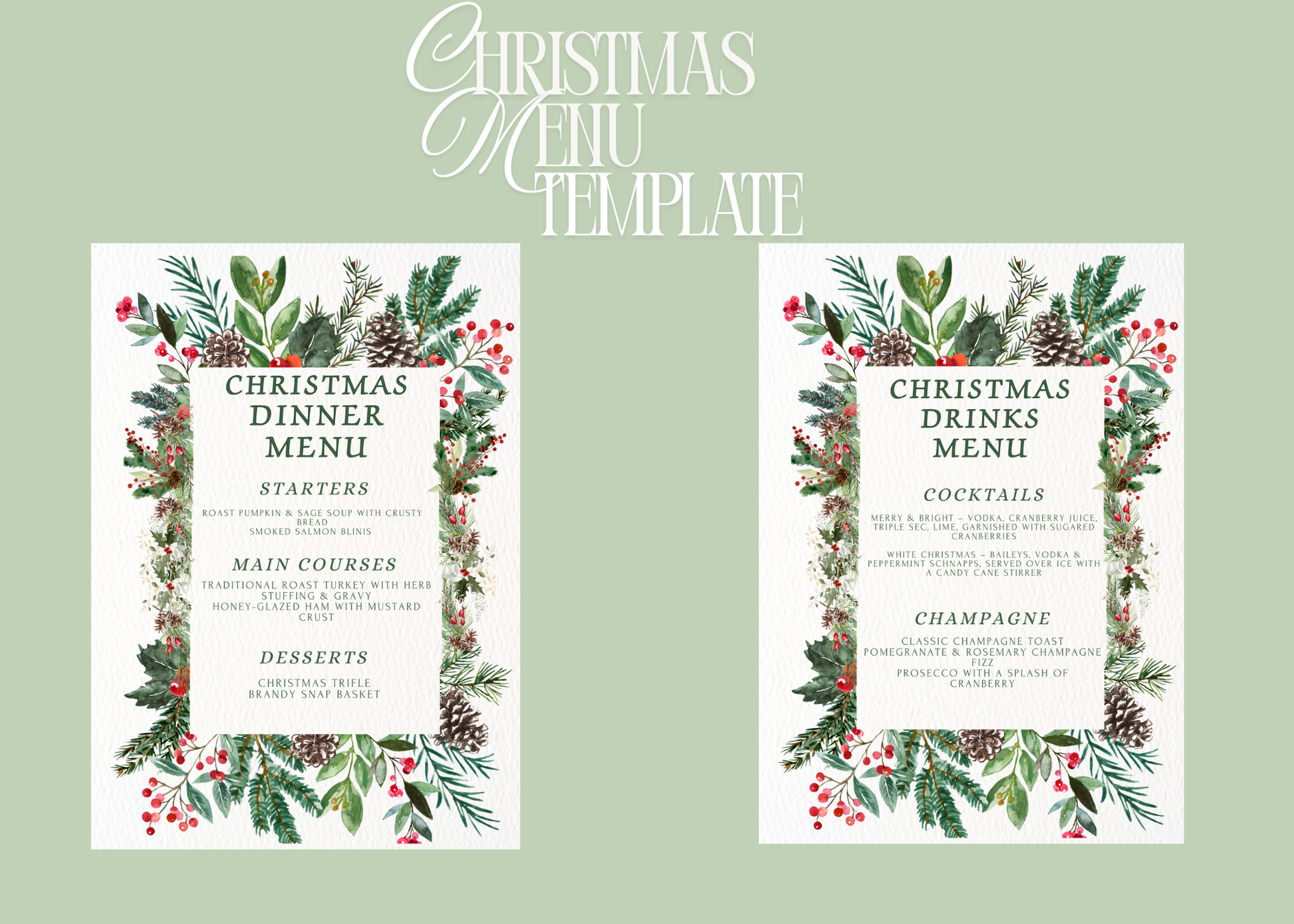 ✨ Create a beautiful Christmas table your guests will remember — download and customize your festive menus today!