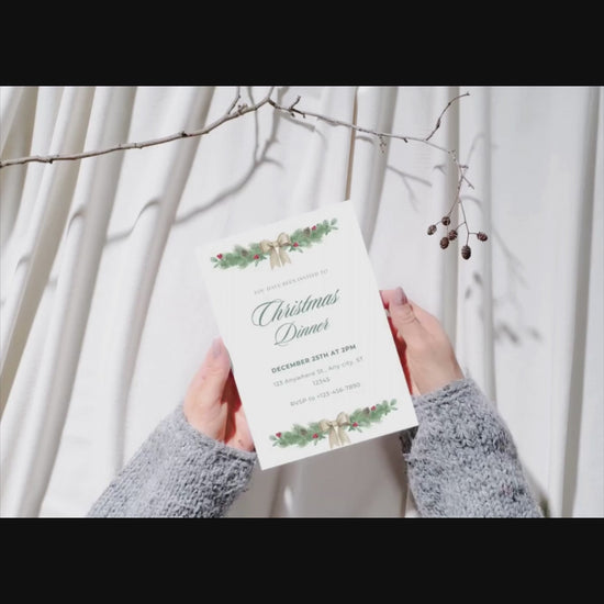 Elegant Christmas Dinner Invitation Template | Editable Holiday Party Invite